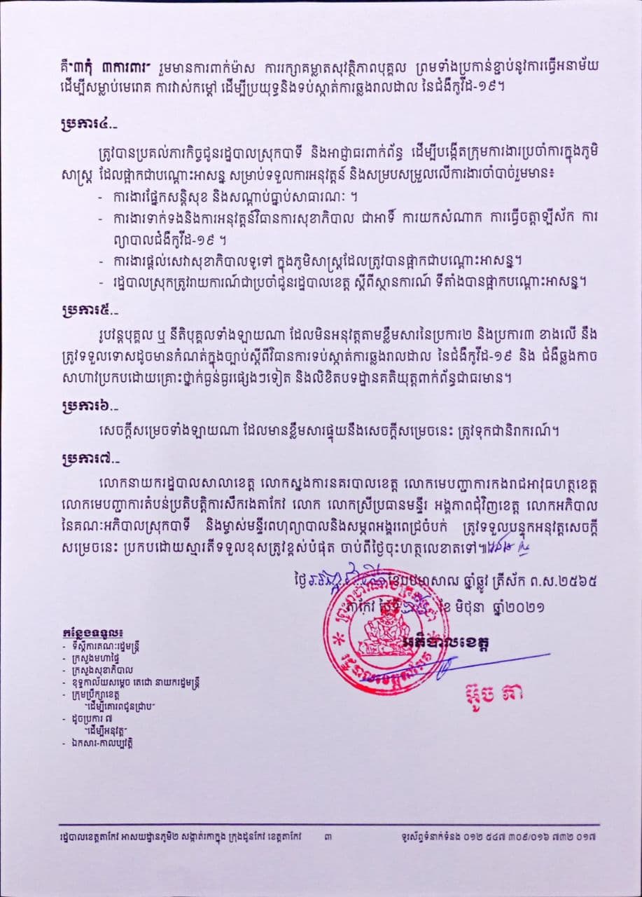 សូមអានលិខិតជូនដំណឹងរបស់ រដ្ឋបាលខេត្តតាកែវ ដូចខាងក្រោម៖